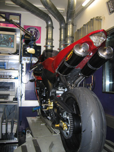Motorrad: ´Die von Ihnen durchgeführten Tuningmaßnahmen sind TÜV-konform. Wie ist es möglich, die Leistung der Euro-3-Norm noch zu steigern? - Hennes Löhr: ´Wir optimieren den Motor, wir bauen ihn ja nicht komplett um. Eine verbesserte Zylinderfüllung durch eine verbesserte Strömungstechnik erhöhen Effektivität und Leistung. In den meisten Fällen nicht aber den Verbrauch. Deshalb sind unsere getunten Motoren oft sparsamer, stoßen folglich weniger Kohlendioxid aus und halten alle anderen Schadstoffgrenzwerte ein. Eine Lambdasonde bleibt ebenso ins Motormanagement eingebunden wie ein Kat. Auch unsere Brennraumoptimierung und das Variieren des Verdichtungsverhältnisses sind nicht schadstoffrelevant.´